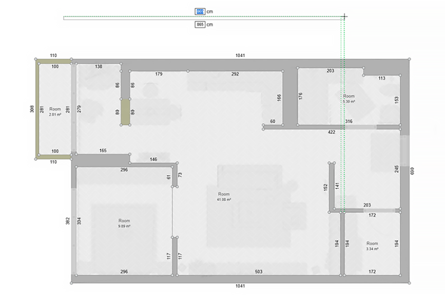 Se você está trabalhando em um projeto real, a precisão é crucial. Seu aplicativo deve permitir que você insira medidas exatas — para paredes, janelas, tetos e mais — até o centímetro ou a polegada. Pontos extras se ele suportar unidades métricas e imperiais, como o Roomtodo faz: você pode facilmente alternar entre metros/centímetros e pés/polegadas diretamente dentro do aplicativo.
