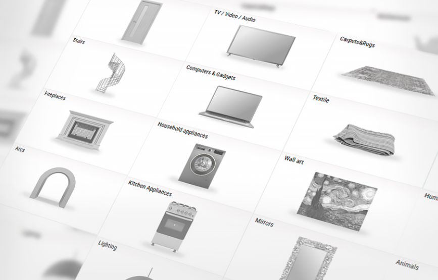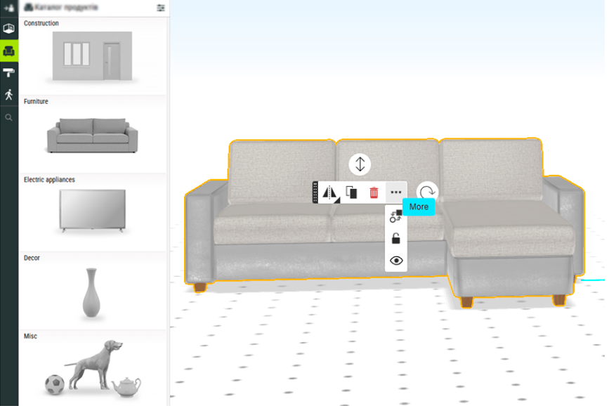 Às vezes, o futuro design é claro desde o início, mas mais frequentemente, nós precisamos tentar diferentes opções antes de fazer a escolha certa. É por isso que um ótimo aplicativo vem repleto de uma grande mistura de mobiliário, eletrodomésticos e decoração. Sofás, mesas, bancadas de cozinha, plantas, objetos de arte – você pode não apenas organizá-los, mas também experimentar com paletas e texturas. O catálogo do Roomtodo permite que você aplique diferentes materiais a cada parte de um item de mobiliário. Por exemplo, você pode criar combinações únicas como madeira para as pernas, estofamento de tecido para o assento e detalhes de metal para as alças.